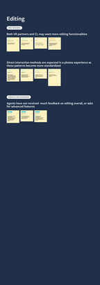 I looked at 19 past research relevant to photos and interviewed 10 help agents who directly interact with partners. Then I affinity diagrammed all the notes to observe the overarching insights. From there, with the PM, we prioritized three main opportunity areas that would bring the biggest value to our partners and travelers.